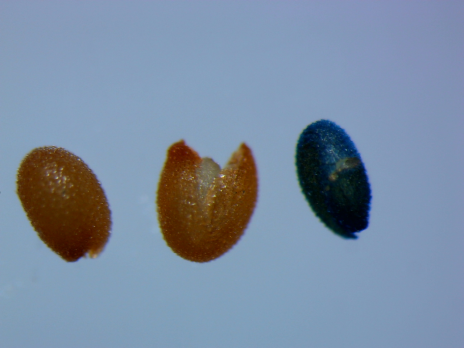 4.觀察:一般染色后,GUS染色陽性的藍色斑點肉眼就能看到。但是有些材料可能藍色斑點很細微,要在顯微鏡下才能看到。