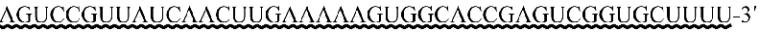 下劃線部分為 Target Sequence反向互補(bǔ)序列,波浪線部分為 SpCas9 sgRNA Scaffold 部分序列。