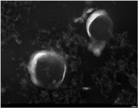 重懸外泌體至50-100 μL 2% PFA中,將5 μL混合懸液加到Formvar-carbon載樣銅網(wǎng)上;也可將5-10 μL混合懸液滴加到封口膜上,將銅網(wǎng)Formvar膜面朝下放在懸液上。每個樣品準(zhǔn)備2-3個銅網(wǎng);將100 μL PBS加到封口膜上。用鑷子將銅網(wǎng) (Formvar膜面朝下) 放在PBS液滴上清洗(在所有步驟中,都應(yīng)保持Formvar膜面濕潤,而另一面干燥);將銅網(wǎng)放在50 μL 1%戊二醛液滴上5 min;將銅網(wǎng)放在100 μL ddH2O洗滌8次,每次洗2 min;將銅網(wǎng)放在50 μL草酸雙氧鈾液滴上(pH 7.0),5 min;將銅網(wǎng)放在50甲基纖維素液滴上10 min,冰上操作;銅網(wǎng)放到樣品臺頂端的不銹鋼環(huán)上,用濾紙吸去多余液體;空氣中干燥5-10 min;將銅網(wǎng)放在樣品盒內(nèi),80 kV下拍攝電鏡照片。