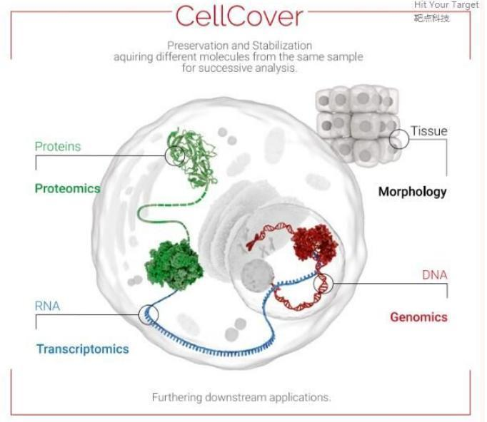 CellCover 是 唯一允許在細胞生理/病理狀態(tài)環(huán)境中即刻并行存儲蛋白質(zhì)、RNA 和 DNA 的試劑。