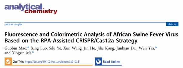 2023年5月11日,中國科學(xué)院深圳先進(jìn)技術(shù)研究院合成生物學(xué)研究所馬英新課題組與湖北大學(xué)印文博士合作,在 Analytical Chemistry 期刊上發(fā)表了題為:Fluorescence and Colorimetric Analysis of African Swine Fever VirusBased on RPA-Assisted CRISPR/Cas12a Strategy 的補(bǔ)充封面論文。