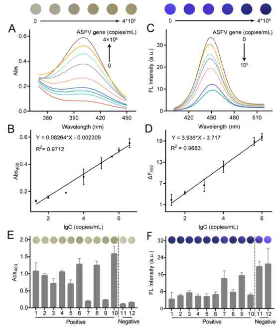 該論文首次構(gòu)建了基于RPA-CRISPR/Cas12a系統(tǒng)的非洲豬瘟病毒(ASFV)比色-熒光雙模式檢測策略,通過構(gòu)建新型磁珠-酶報告系統(tǒng),結(jié)合RPA-CRISPR/Cas12a技術(shù),實現(xiàn)了對ASFV基因的比色-熒光雙模式精準(zhǔn)檢測。