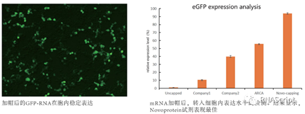 完整mRNA在細胞內(nèi)表達GFP蛋白,加帽酶與帽類似物對比
