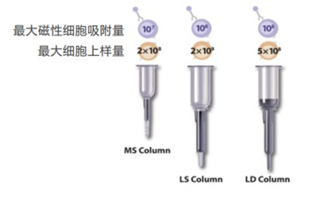 不同的試劑盒對于MS/LS/LD柱的最大細胞上樣量和最大磁性細胞吸附量是不同的,建議一定要參考說明書;