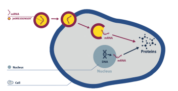 DNA轉(zhuǎn)染要穿過(guò)兩層屏障,而mRNA轉(zhuǎn)染只需要穿過(guò)一層屏障,不需要穿過(guò)核膜,對(duì)細(xì)胞比較溫和;且mRNA輸送無(wú)需進(jìn)入細(xì)胞核,與DNA轉(zhuǎn)染相比,消除了基因組整合的風(fēng)險(xiǎn)。