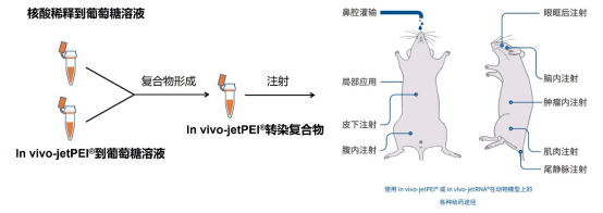 in vivo-jetPEI?使用便捷,和體外轉(zhuǎn)染類似,核酸和in vivo-jetPEI?混合后,直接注射到動(dòng)物體內(nèi)(Fig. 2)。