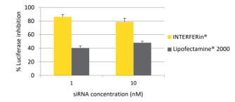 Fig. 1: INTERFERin? 僅需要1 nM siRNA達(dá)到有效的基因沉默