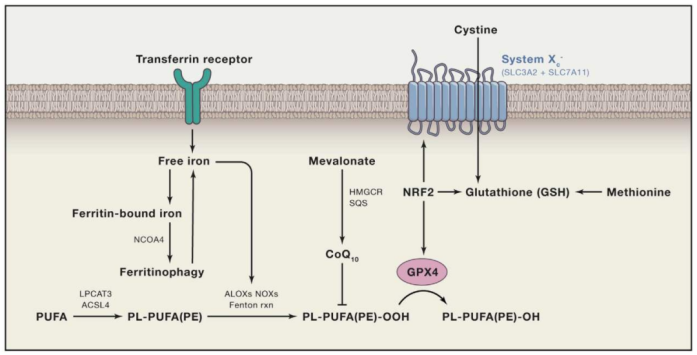 對鐵死亡的調(diào)控,主要集中在System Xc-、GSH代謝,調(diào)控谷胱甘肽過氧化物酶4(GPX4)活性和ROS生成等方面。