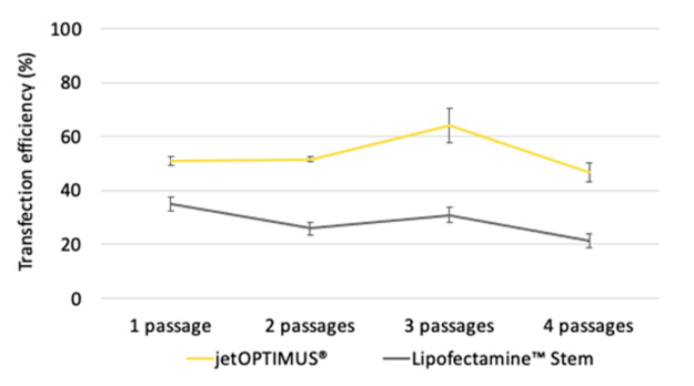 1.jetOPTIMUS?確保原代間充質(zhì)干細(xì)胞在多次傳代時(shí)具有高轉(zhuǎn)染效率