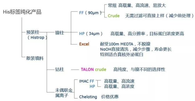 His標(biāo)簽是一個(gè)只有6個(gè)組氨酸的小標(biāo)簽,但神通廣大。首先,His標(biāo)簽比較小,對蛋白結(jié)構(gòu)和功能影響較小,一般純化后也可以無需切除;其次,His標(biāo)簽可以和其他標(biāo)簽一起使用,增加純化的純度;此外,His標(biāo)簽也可以在變性條件下進(jìn)行蛋白純化,適用于特殊的操作或者包涵體純化;最后,His標(biāo)簽蛋白的純化方式多樣,純化工藝也非常成熟,可以選擇重力操作和離心操作,也可以選擇AKTA純化系統(tǒng)。