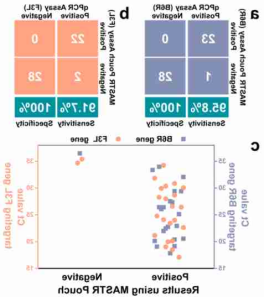 研究人員還使用MASTR袋測試了各種類型的模擬臨床標(biāo)本,結(jié)果表明MASTR袋擁有與qPCR實驗室測試相當(dāng)?shù)奶禺愋耘c靈敏度,證明了MASTR袋檢測猴痘病毒的準(zhǔn)確性(圖4)。