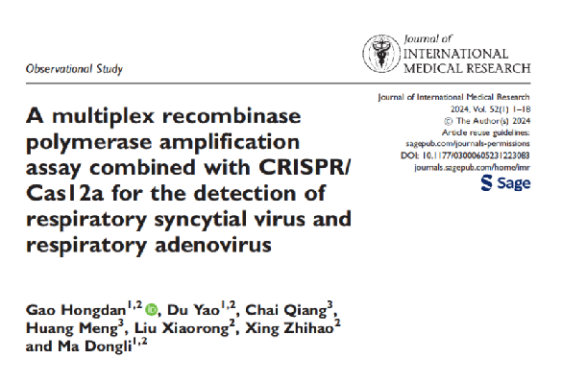 急性呼吸道感染是兒童常見的呼吸道疾病,通常由病毒引起。呼吸道合胞病毒(RSV)和呼吸道腺病毒(ADV)是引起兒童急性呼吸道感染的兩種常見病原體。輕度者可引起常見的感冒癥狀,如咳嗽和流鼻涕,而嚴重者可出現嚴重的并發(fā)癥,如肺炎和中耳炎。根據世界衛(wèi)生組織的建議,病原體的檢測需要具備快速、準確、敏感、特異性的特點,不應依賴專門的技術人員或大型儀器。因此,開發(fā)一種能夠滿足上述檢測要求的RSV和ADV的檢測方法尤為重要。深圳兒童醫(yī)院兒科研究所的馬東禮主任課題組在《Scientific Reports》期刊上發(fā)表文章《A multiplex recombinase polymerase amplification assay combined with CRISPR/ Cas12a for the detection of respiratory syncytial virus and respiratory adenovirus》,影響因子4.6。