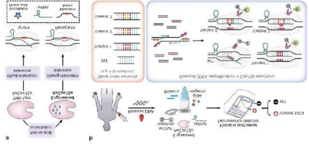 CoHIT系統(tǒng)的核心在于一種改良的AsCas12a蛋白,即enAsU-R,它僅需一條crRNA就能靶向多個不同的變異體。通過對AsCas12a的功能區(qū)域進(jìn)行氨基酸替換,研究人員成功提高了蛋白的錯配耐受性和PAM性能,使其能識別與crRNA序列有少量堿基錯配的靶標(biāo)DNA。在CoHIT檢測系統(tǒng)中,Cas12a/crRNA復(fù)合體能識別并切割多個Indel變異體,從而觸發(fā)ssDNA切割活性,釋放出熒光信號,而野生型DNA則由于與crRNA識別序列的不同而無法引發(fā)熒光信號,保證了檢測的特異性。