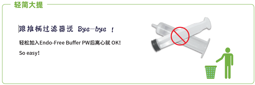 ● 操作更簡單:使用去內(nèi)毒素buffer替換推柄式過濾器,更方便。