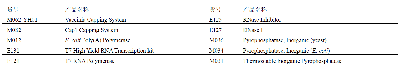 本體系可用于 IVT RNA 的加帽反應(yīng),使加帽反應(yīng)在 1h 之內(nèi)完成,效率接近 100%。IVT 推薦使用近岸蛋白質(zhì) T7 High Yield RNA Transcription kit(貨號(hào):E131)。