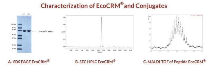 我們一致發(fā)現(xiàn) EcoCRM 偶聯(lián)物誘導(dǎo)的抗體應(yīng)答等于或大于 KLH 偶聯(lián)物。此外,與 KLH 不同,CRM 結(jié)合物可通過 SDS PAGE 和質(zhì)譜進(jìn)行表征。?197 我們的研究表明,用 EcoCRM(Fina Bio 的 CRM)制備的結(jié)合物的免疫原性與用 KLH 制備的結(jié)合物相當(dāng)。