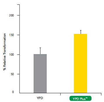 在酵母轉(zhuǎn)化協(xié)議的outgrowth步驟通常是提高整體酵母轉(zhuǎn)化效率的關(guān)鍵。這是有用的,當(dāng)試圖最大化轉(zhuǎn)化效率的文庫篩選或轉(zhuǎn)化酵母與多重質(zhì)粒。YPD Plus?是一種特殊配方的酵母轉(zhuǎn)化效率提高> 50%。推薦使用YPD Plus?對于突變的酵母菌株,表現(xiàn)出不好的生長特性,不易于轉(zhuǎn)化。只需補(bǔ)充酵母與YPD Plus?的轉(zhuǎn)化反應(yīng)混合物,以實(shí)現(xiàn)酵母轉(zhuǎn)化效率的持續(xù)提高。