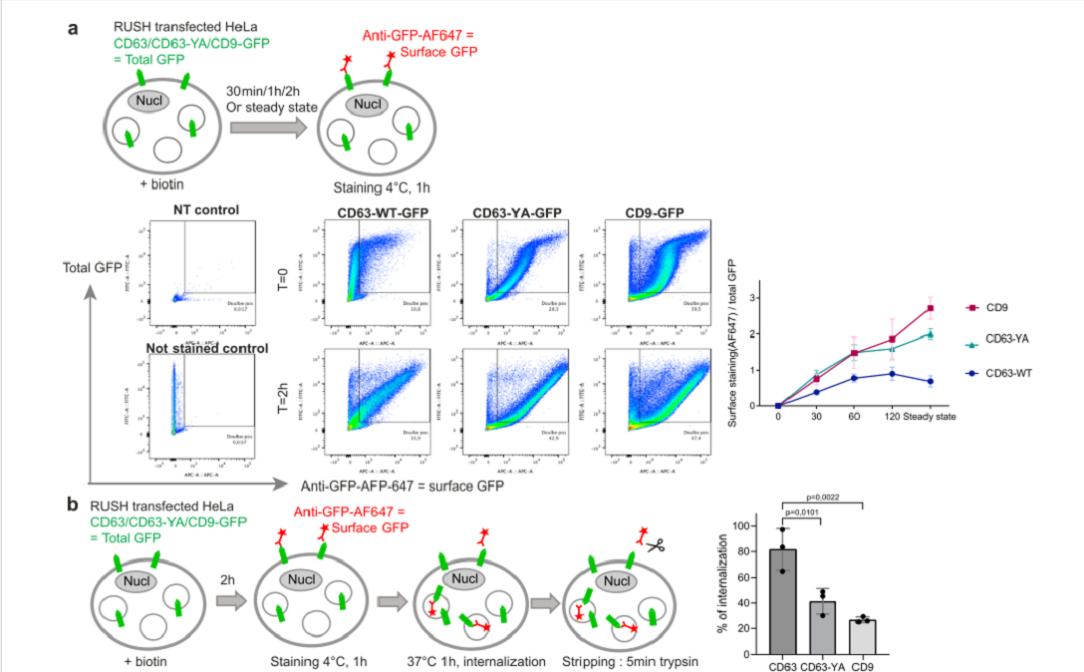 03. 與 CD63 不同,CD9 和 CD63-YA 具有相似的 PM 定位和內(nèi)化動力學
