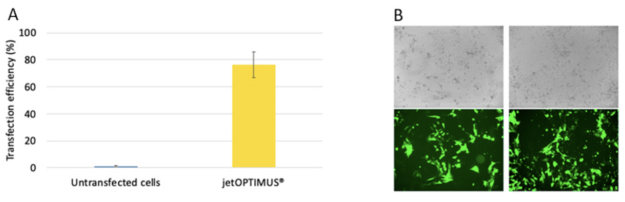 2.jetOPTIMUS?在不影響小鼠胚胎干細(xì)胞生存能力的情況下實(shí)現(xiàn)了60%以上的轉(zhuǎn)染效率