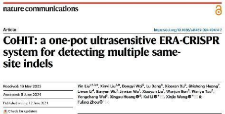 近日,中國農(nóng)業(yè)科學(xué)院深圳農(nóng)業(yè)基因組研究所(嶺南現(xiàn)代農(nóng)業(yè)科學(xué)與技術(shù)廣東省實驗室深圳分中心)聯(lián)合武漢大學(xué)中南醫(yī)院在學(xué)術(shù)期刊《自然·通訊(Nature Communications)》上在線發(fā)表了題為“CoHIT: a one-pot ultrasensitive ERA-CRISPR system for detecting multiple same-site indels”的研究論文