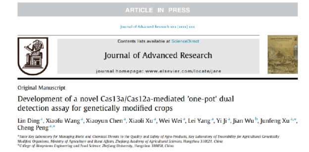 文章標(biāo)題:《Development of a novel Cas13a/Cas12a-mediated “one-pot”dual detection assay for genetically modified crops》